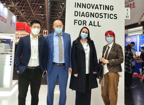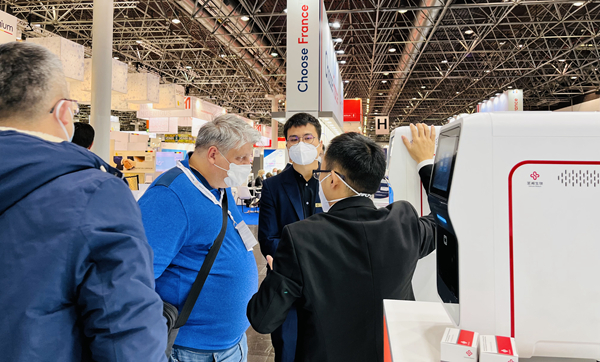 在KY.COM-开云(中国)展台,“全自动解决方案”“半自动解决方案”“新冠整体解决方案”,以最大程度满足不同国家和地区客户、不同应用场景检测需求的特点,获得了众多来访国际客户的好评。尤其是iPonatic四通道产品,以其便捷、易操作、检测时间快、检测项目多等优势吸引了会场一大波新老“粉丝”的目光。