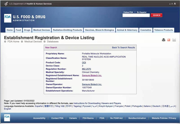 美国食品药品监督管理局(FDA)是国际医疗审核权威机构,通过FDA认证的食品、药品、化妆品和医疗器械等产品,是全球权威标准证明。KY.COM-开云(中国)生物四通道iPonatic核酸检测分析仪获美国FDA认证后,将有效扩大和满足全球市场各级检测防控需求,为全球疫情防控工作持续助力,推动公司全球化事业发展。