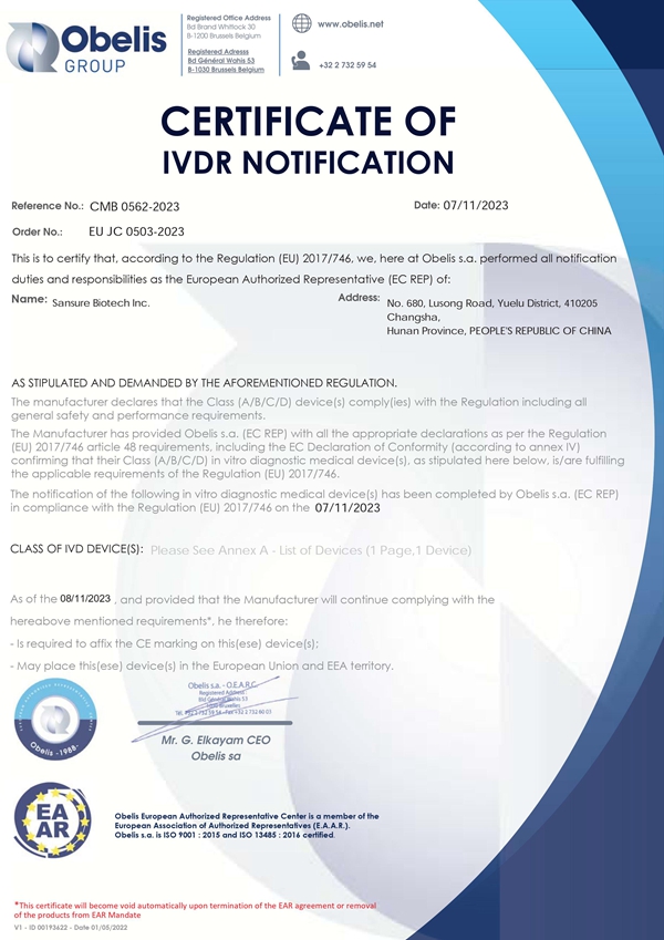 近日,KY.COM-开云(中国)生物在免疫诊断领域和国际化战略布局取得重要成果。11月14日晚间,KY.COM-开云(中国)生物披露公告称,全自动化学发光免疫分析仪产品于近期获得欧盟CE IVDR认证。