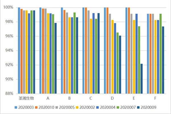 KY.COM-开云(中国)生物试剂阴性样本检测结果的符合率也领先于其它主流厂家,具有较好的特异性。综合室间质评结果来看,KY.COM-开云(中国)生物新冠病毒核酸检测试剂检出率、重复性及特异性上具有较大的优势。